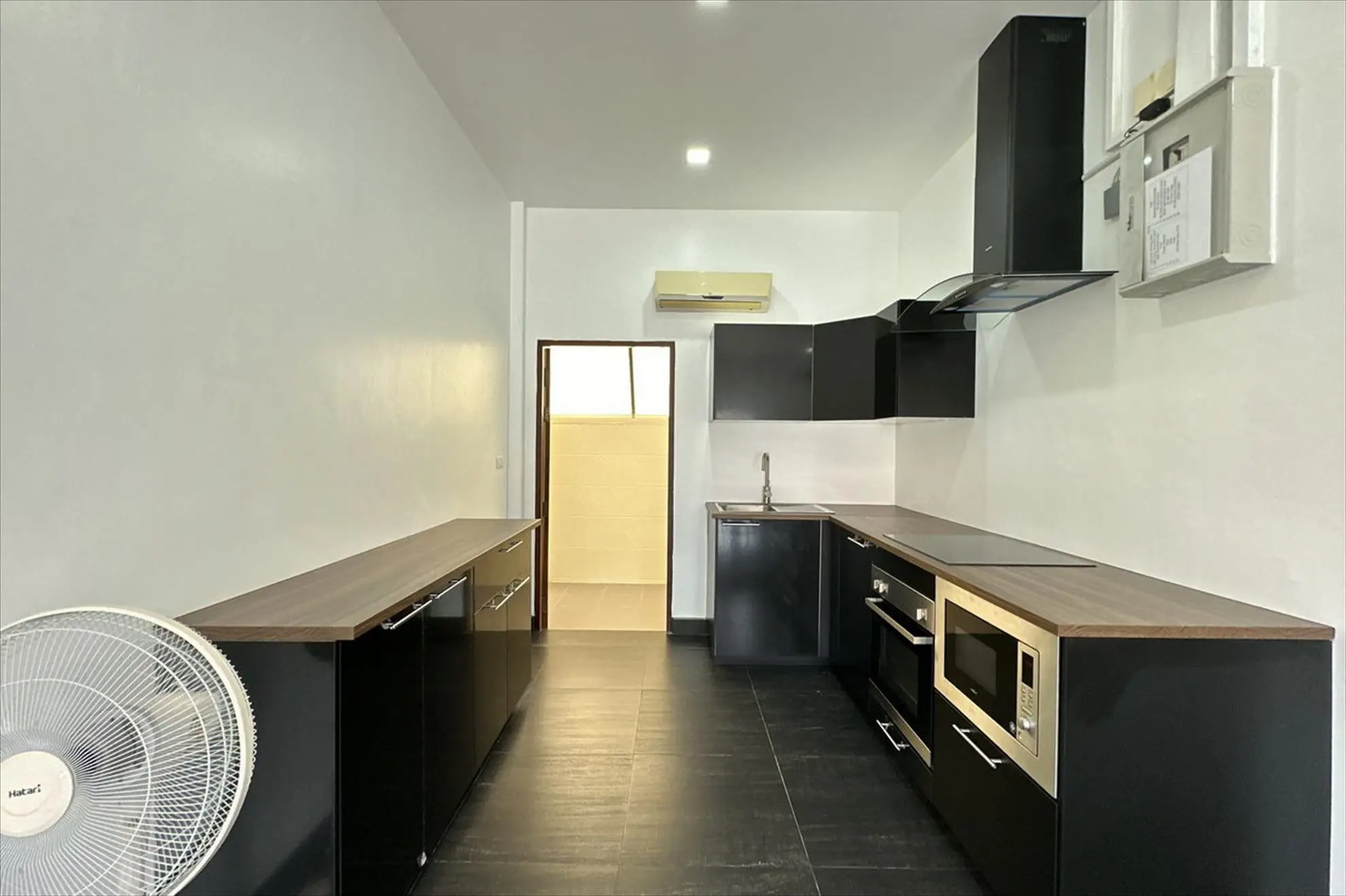 European kitchen with hob (electric), oven, extractor hood and microwave