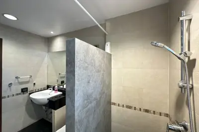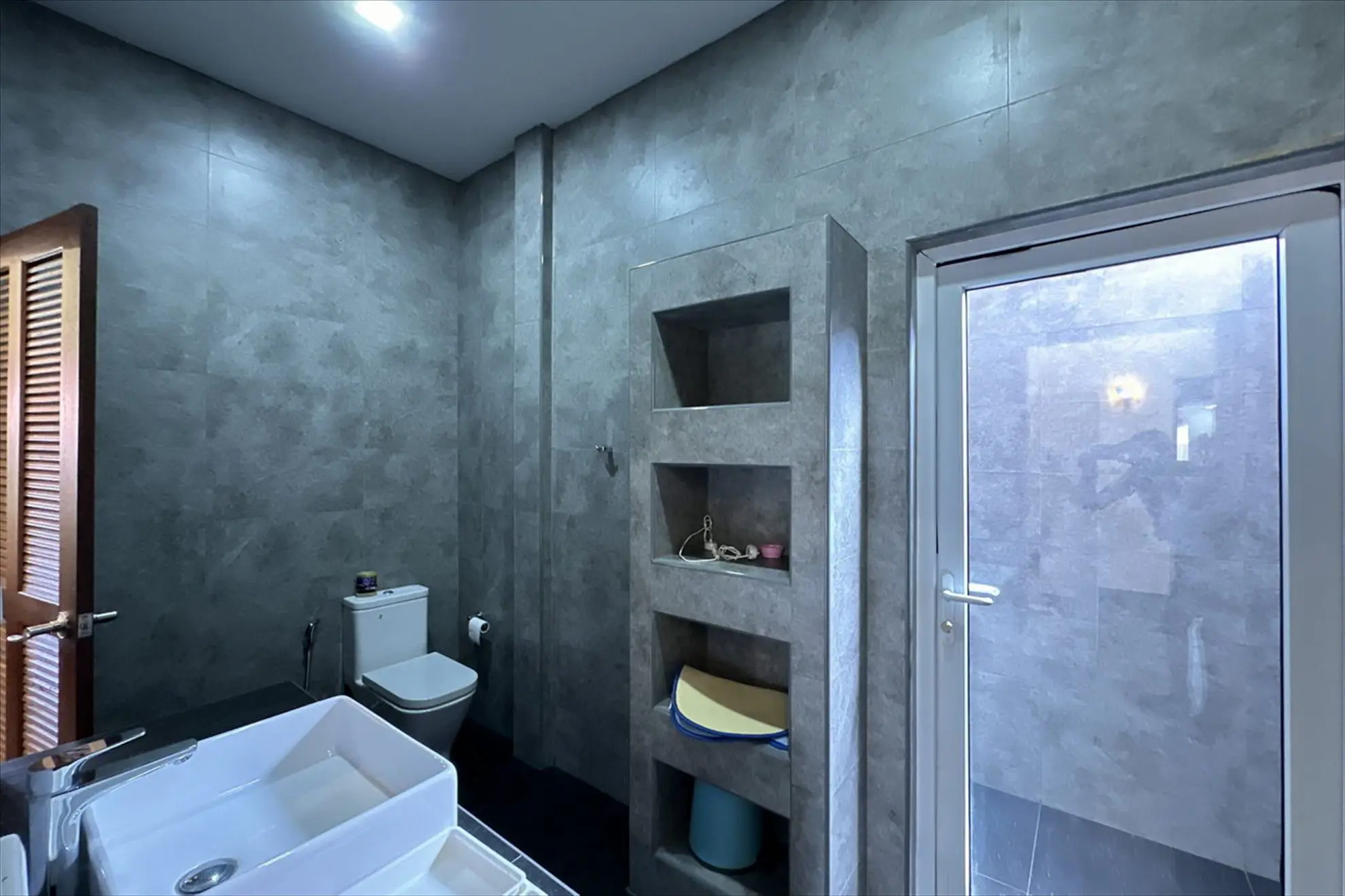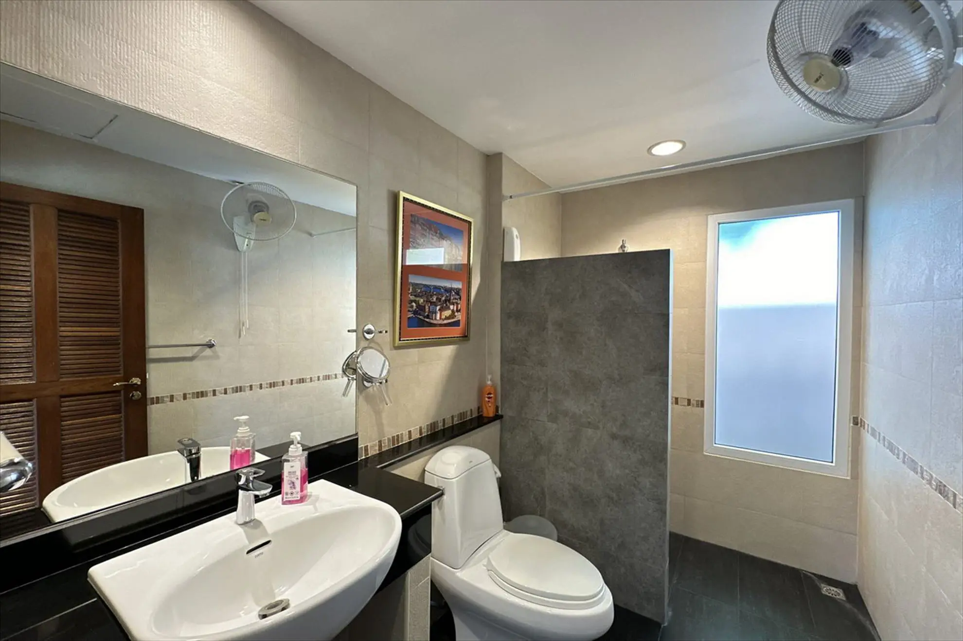 Shared ensuite bathroom (2 door entry) with an open-air shower