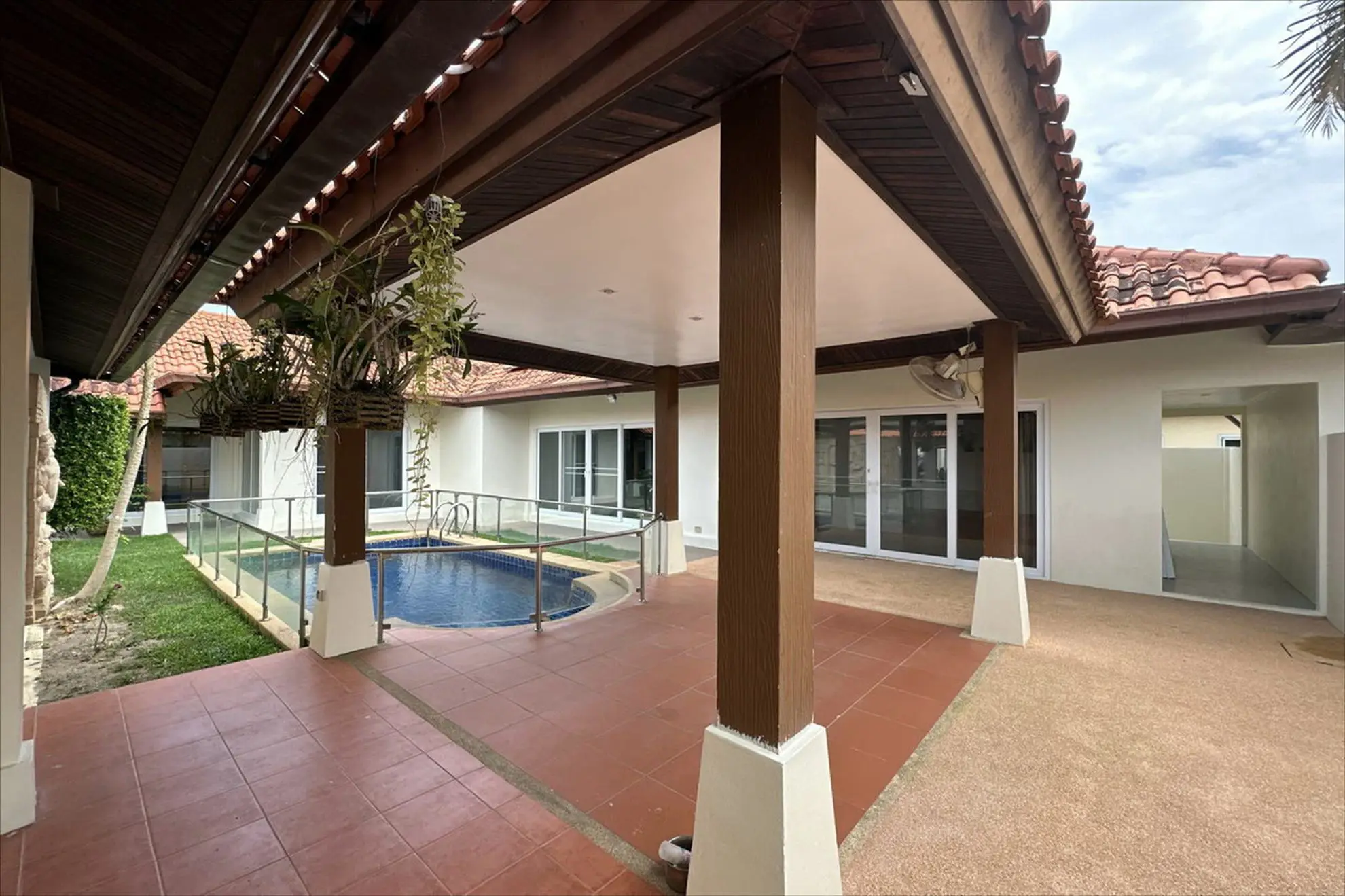Baan Balina 2 Detached Pool Villa for Sale, land size 496 sqm, living area 290 sqm aprox, 4+1 bed, 3+1 bath, maids room, Euro kitchen, part furnished, Tropical Garden, Garage, Private Swimming Pool, 24HS