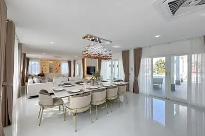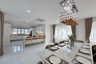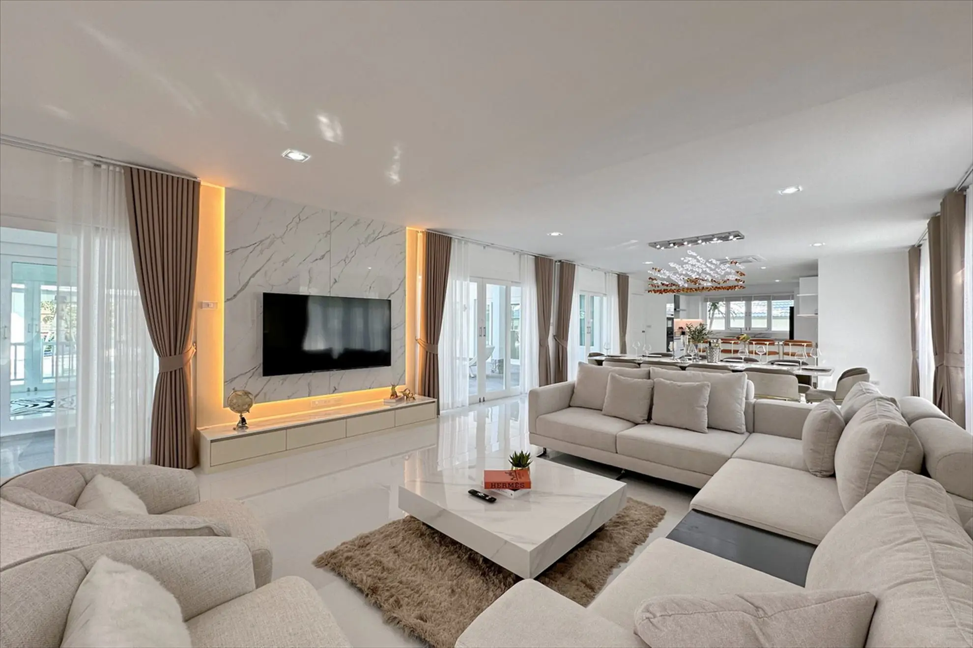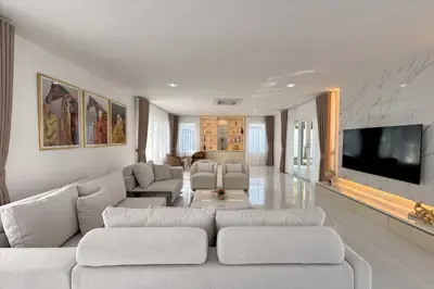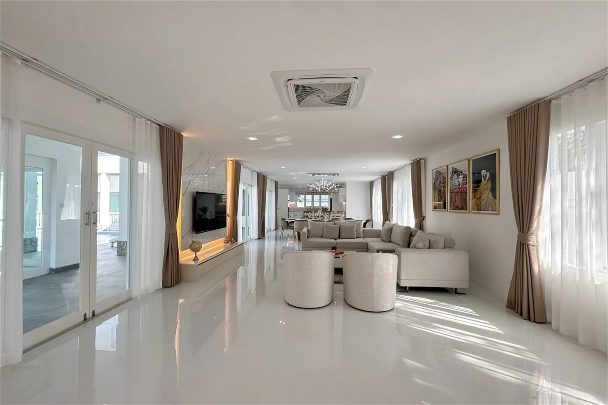 This newly renovated and furnished mansion offers a blend of elegance and modern comfort, perfectly situated on a spacious 374 Tw² (1,496 sqm) plot with approximately 608 sqm of living space.