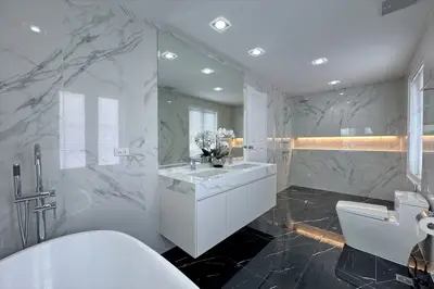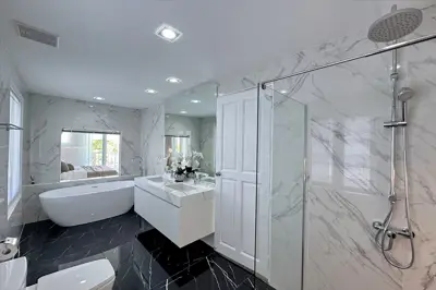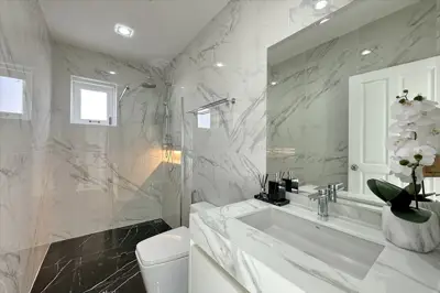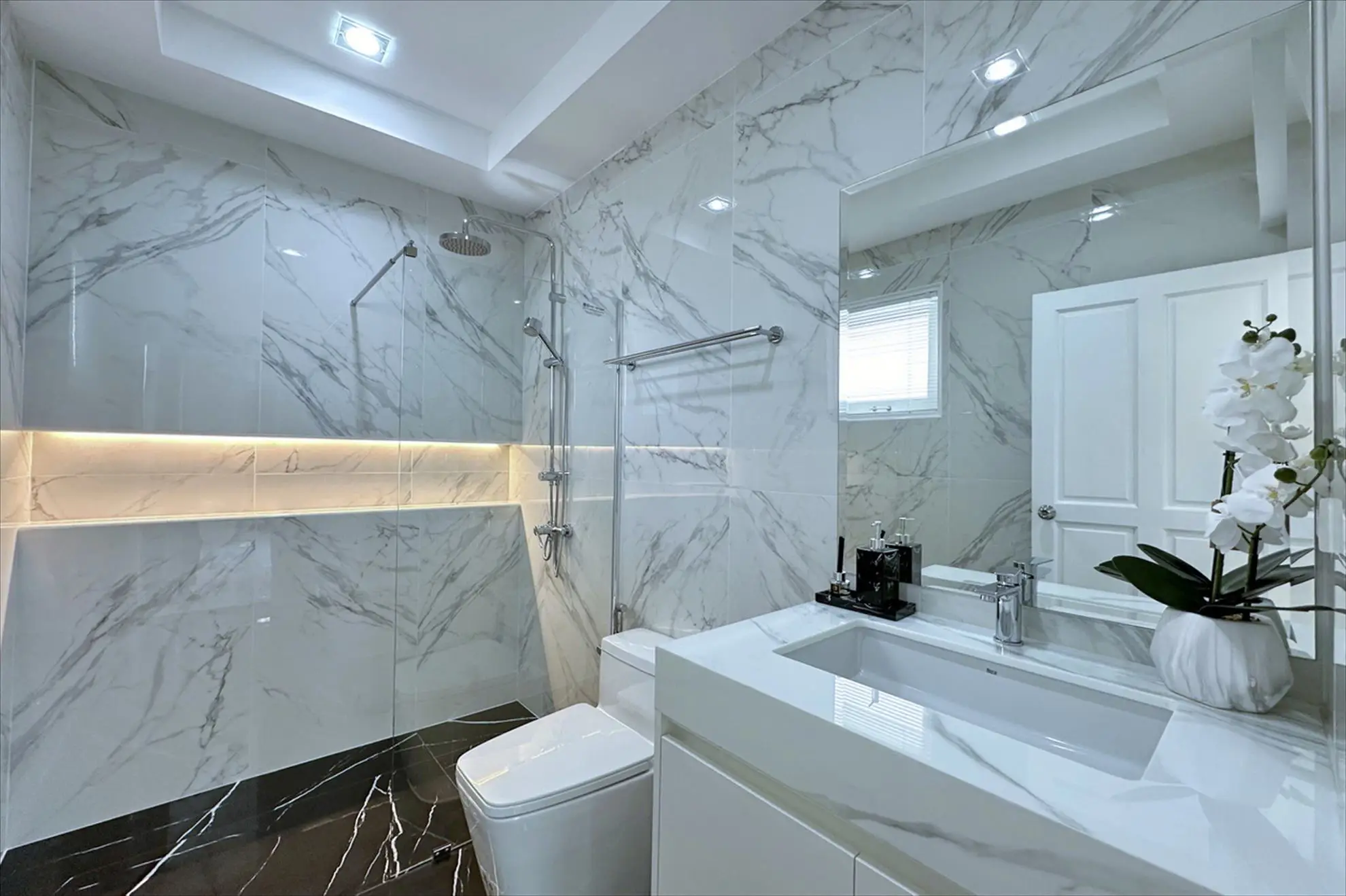 The 4th and 5th Bedrooms also offer generous space, built-in wardrobes, and ensuite bathrooms featuring glass shower cubicles and rainfall showers.