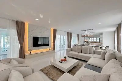 Bayview Residence,Elegant Mansion with Private Swimming Pool for Sale, Newly Renovated, land size 1,496 sqm, living area 608 sqm, 5+1 Bed, 6+1 Bath, Euro & Thai kitchens, full furnished, Conservatory, Tropical Garden, 24HS