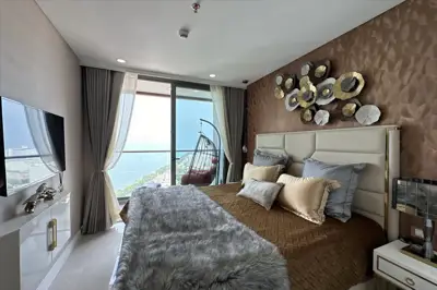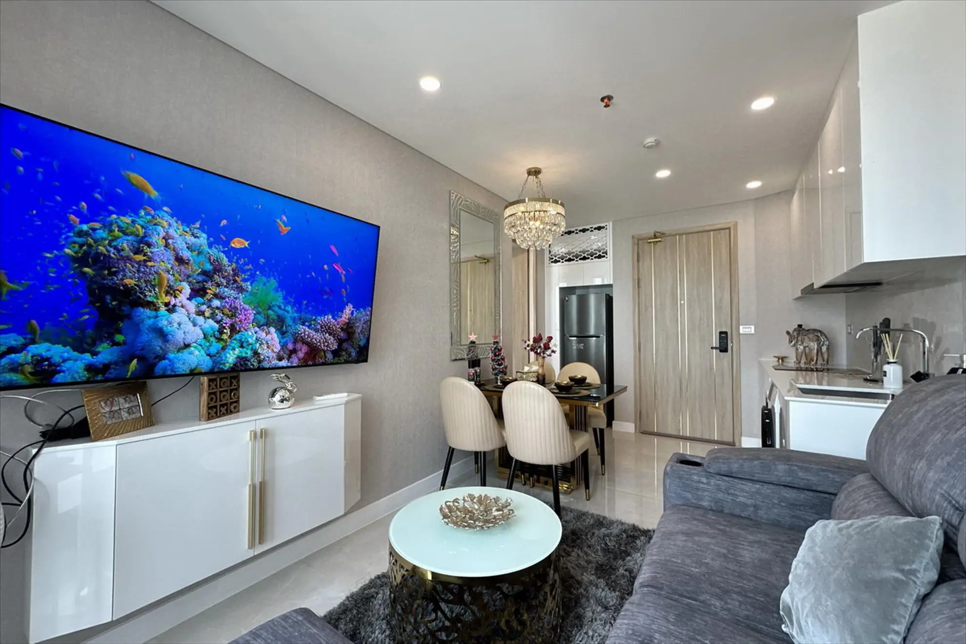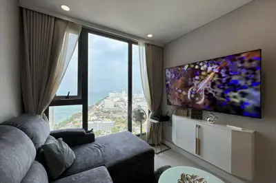Copacabana Beach Jomtien Condo for Sale, 34.6 sqm, 1 bed, 1 bath, Euro kitchen, full furnished, Balcony, Sea View, 4 Communal Swimming Pools, Sauna, Gym, Roof Garden, Foreign Owned