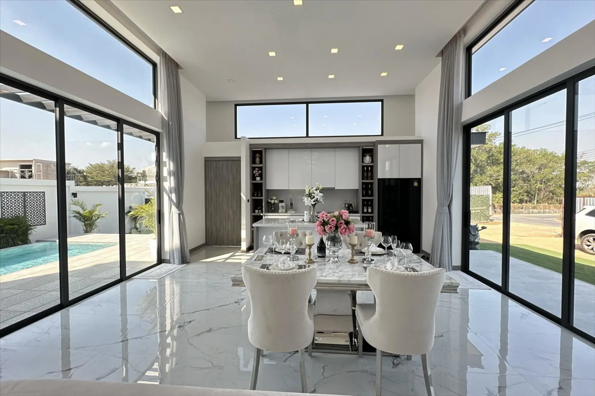 We offer a 24/7 high-security system. As for privacy, our attention to detail in the design reflects the house design and the swimming pool area making it hidden from the outside, boasting the ultimate privacy for you and your loved ones.