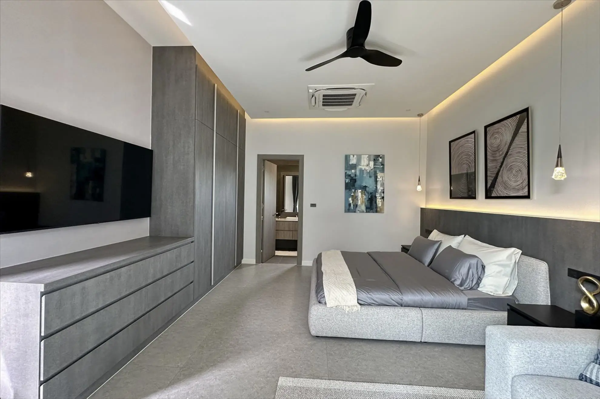 The master suite is a private sanctuary, complete with a walk-in closet and a lavish en-suite bathroom.
