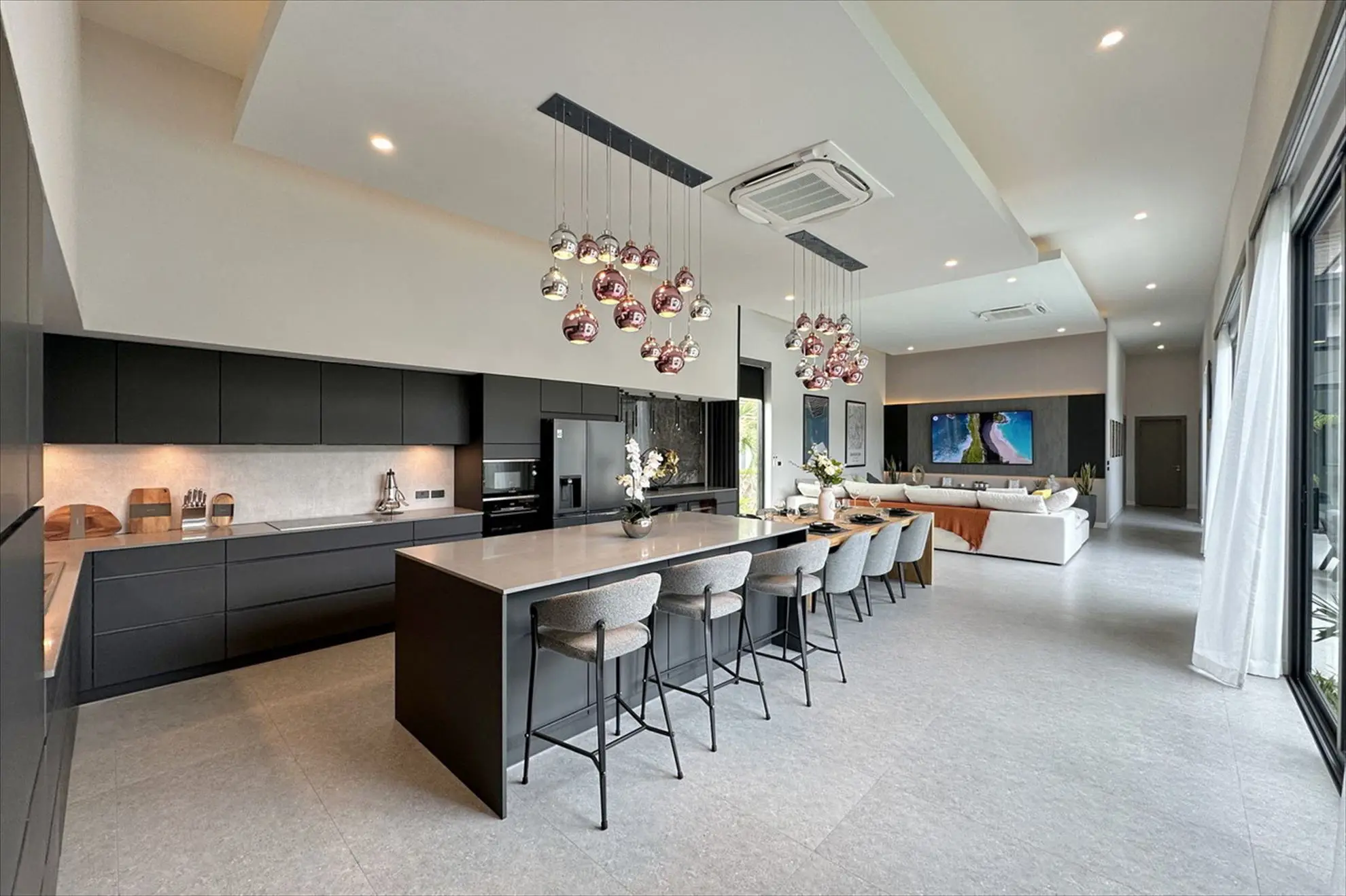 The expansive open-plan living area is the heart of the home, offering a perfect blend of comfort and sophistication.