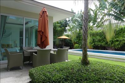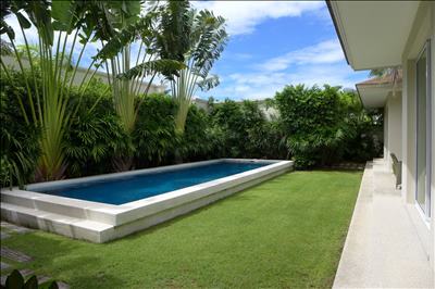 The Vineyard 3 La Residence, Modern Pool Villa for Rent, land size 680 sqm, living area 160 sqm, 3 bed, 2 bath, Euro kitchen, full furnished, Tropical Garden, Private Swimming Pool, 24HS, Gym, Easy access Hyw 7 and 36, Regents International School