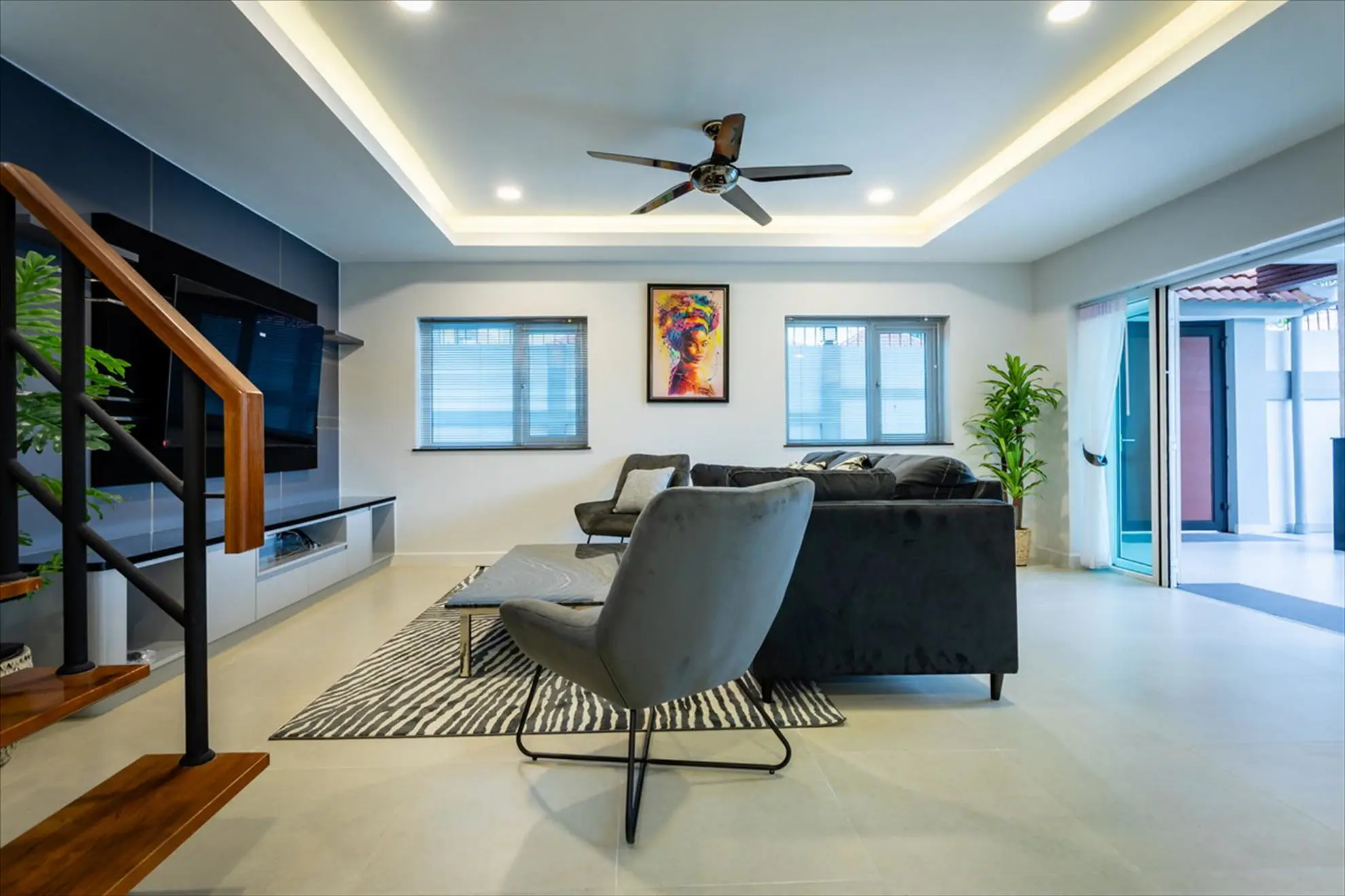 Open plan living room with lounge and dining areas