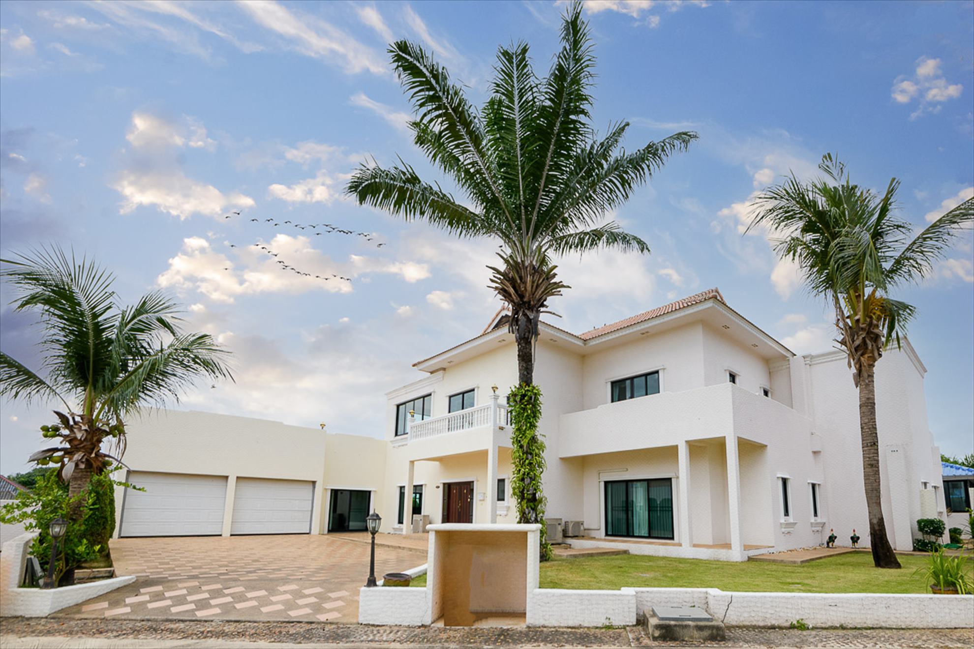 Santa Maria Village, Floridian Style Pool Villa for Sale, land Size 1,200 sqm, living area 550 sqm, 6 bed, 6 bath, European kitchen, full furnished, Tropical Garden, Private Swimming Pool, 24 HS