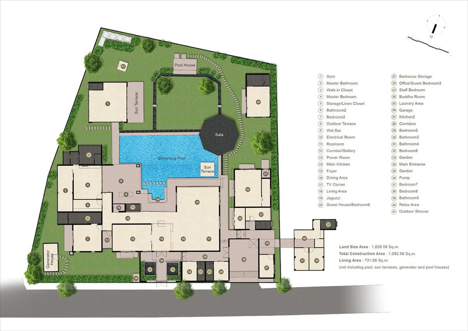 East Pattaya, The Vineyard 1 Modern Luxury Pool Villa for Sale, land size 1,828 sqm, living area 731 sqm, 8 Bedrooms, 8 Bathrooms, European kitchen, full furnished, Private Swimiing Pool, 24 HS