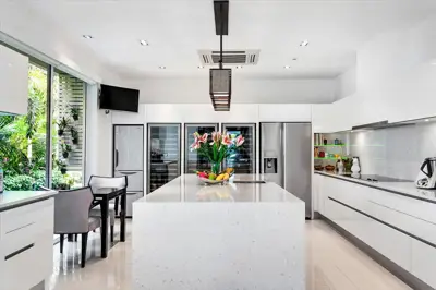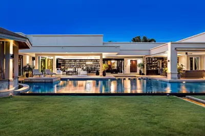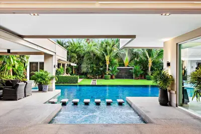 An immensely good-looking villa with an appealing contemporary architecture a 90 to 100 minutes drive south east of bustling Bangkok.