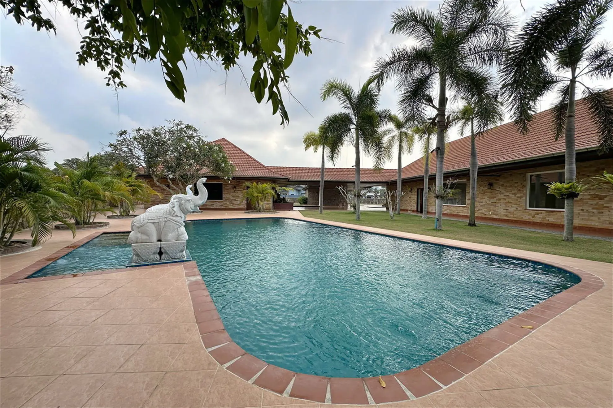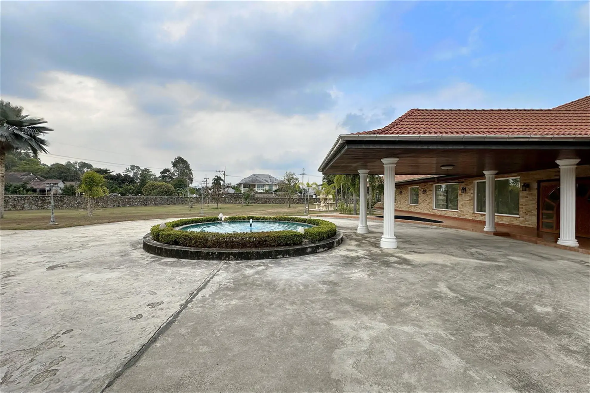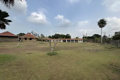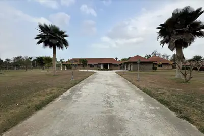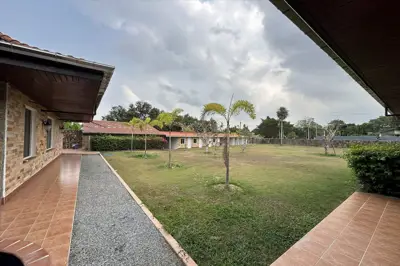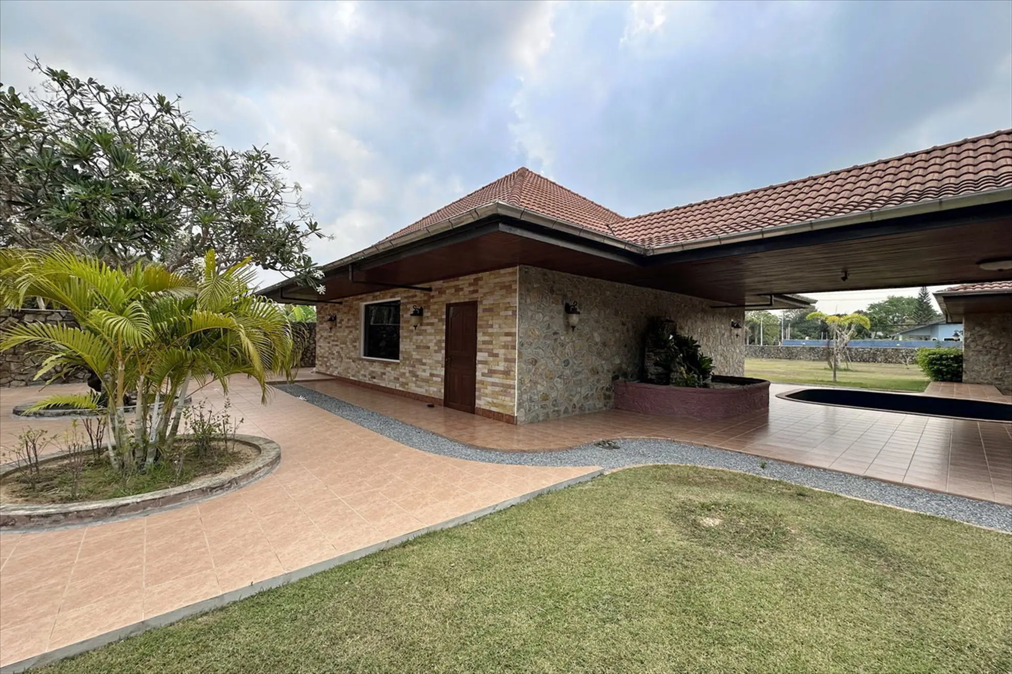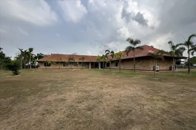 Situated on 5 Rai 389 Tw2 (9,556 sqm) of land, the property includes a main house, a separate guest house, and an outbuilding, all surrounded by beautifully landscaped tropical gardens.