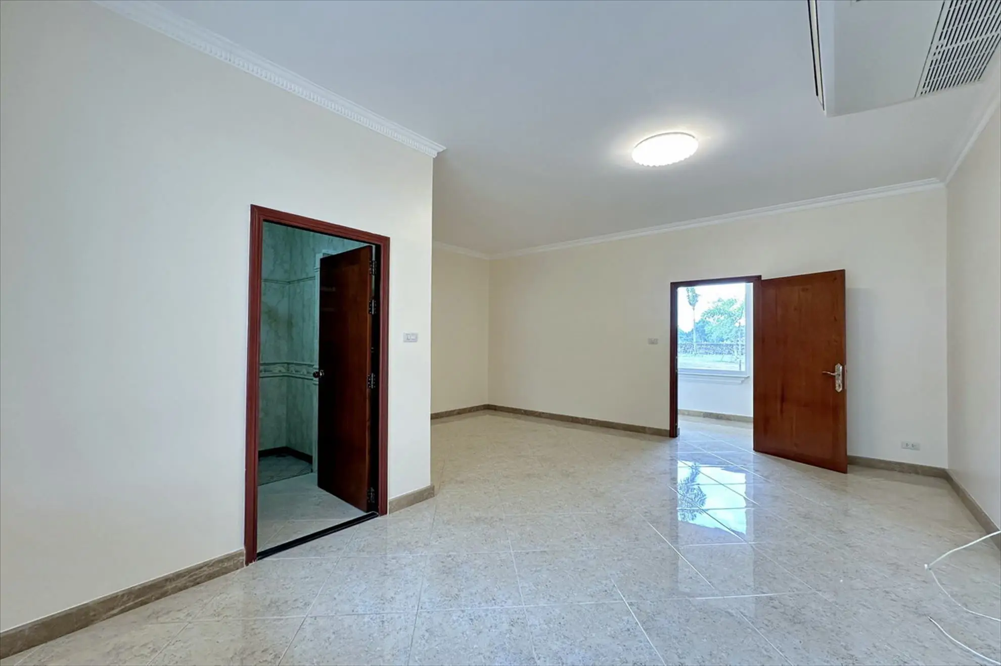 The master suite features a walk-in closet, a storeroom, and a luxurious ensuite with a jacuzzi bathtub and shower.