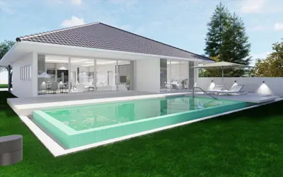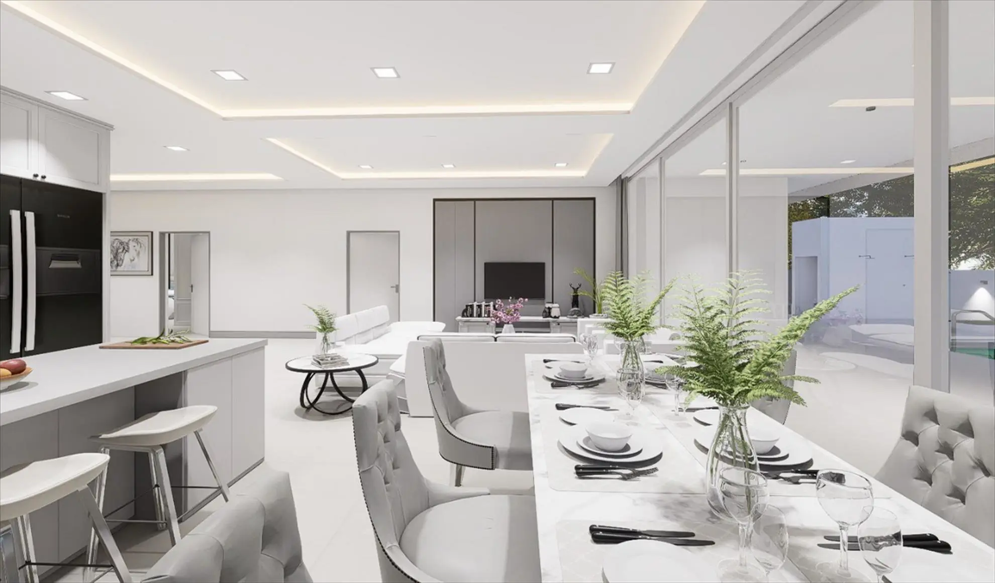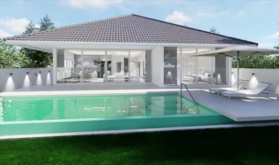 Huay Yai Park Villas comprises a total of 40 pool villas, each designed to offer a harmonious blend of comfort and style. Every villa features three bedrooms, three bathrooms and or three bedrooms, four bathrooms, and a spacious living area spanning 150 square meters. The thoughtful layout ensures ample space for relaxation, entertainment, and family gatherings.