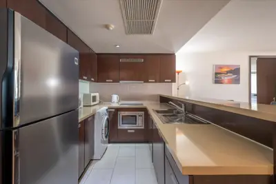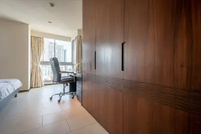 Additional conveniences include a storeroom and two balconies with partial sea and city views, offering a perfect spot to relax and enjoy the stunning surroundings.Communal facilities include a swimming pool, gym, laundry and maid services, key card entry, CCTV, and car parking, providing residents with top-tier amenities and peace of mind