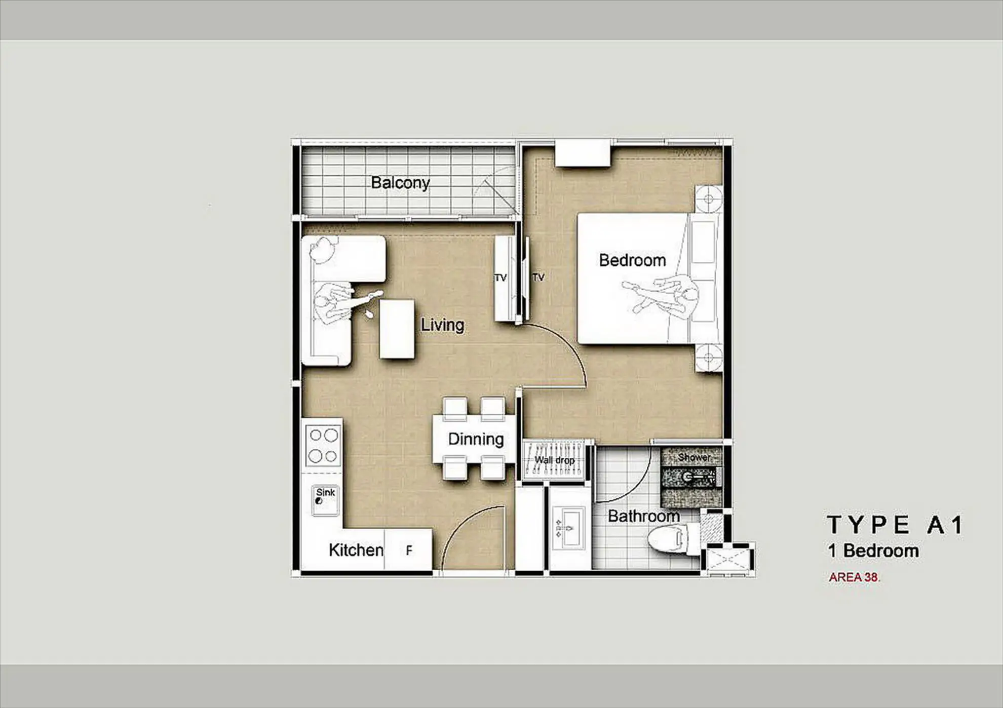 New Grand Avenue Residence Condo for Sale, 46 to 56 sqm, 1 bed, 1 bath, European kitchen, built-ins, Ready to Move In, Balcony, * Prices from: * 3.74 M Baht