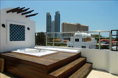 Near Wongamat Beach, Exclusive Place Townhouse for Sale, 3 Storey, land size 72 sqm, living area 170 sqm, 3 bed, 3 bath, kitchen, full furnished, Skydome Deck Roof Terrace with Jacuzzi Tub, Communal Swimming Pool, 24HS