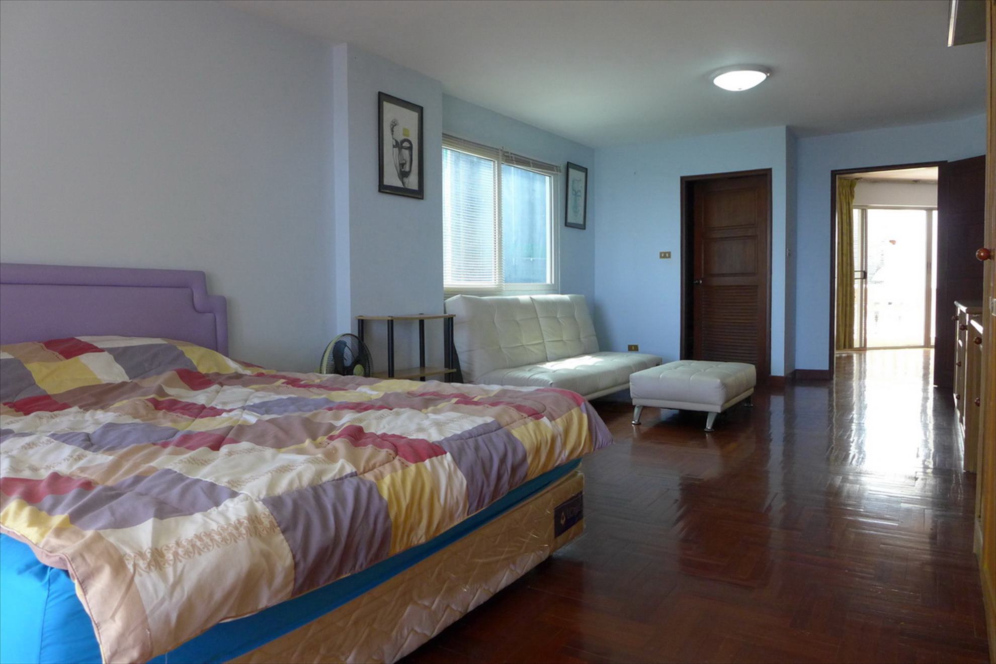 Bedroom with fitted wardrobes and cabinets, balcony