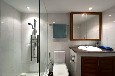 En-suite bathroom with glass shower cubicle