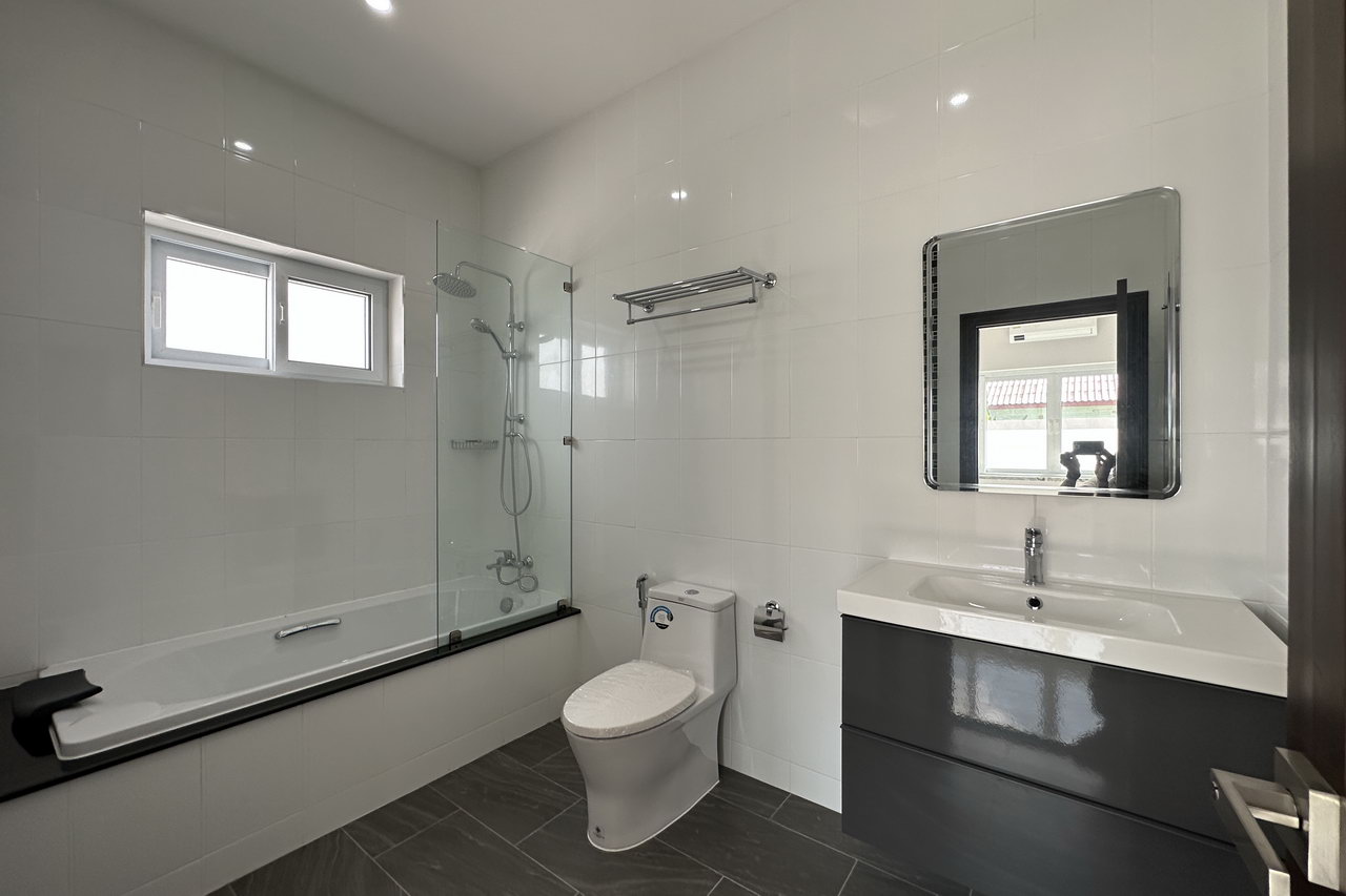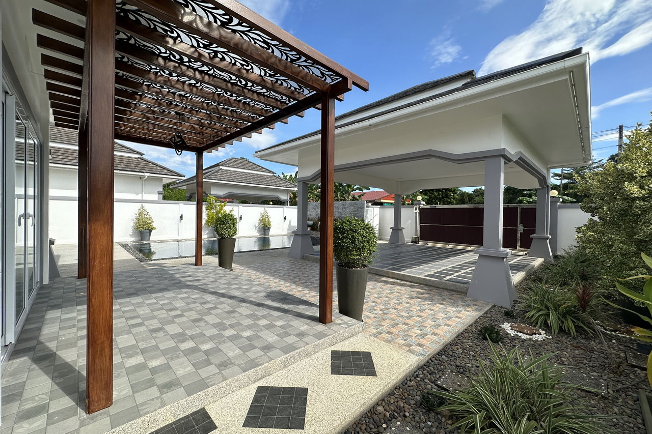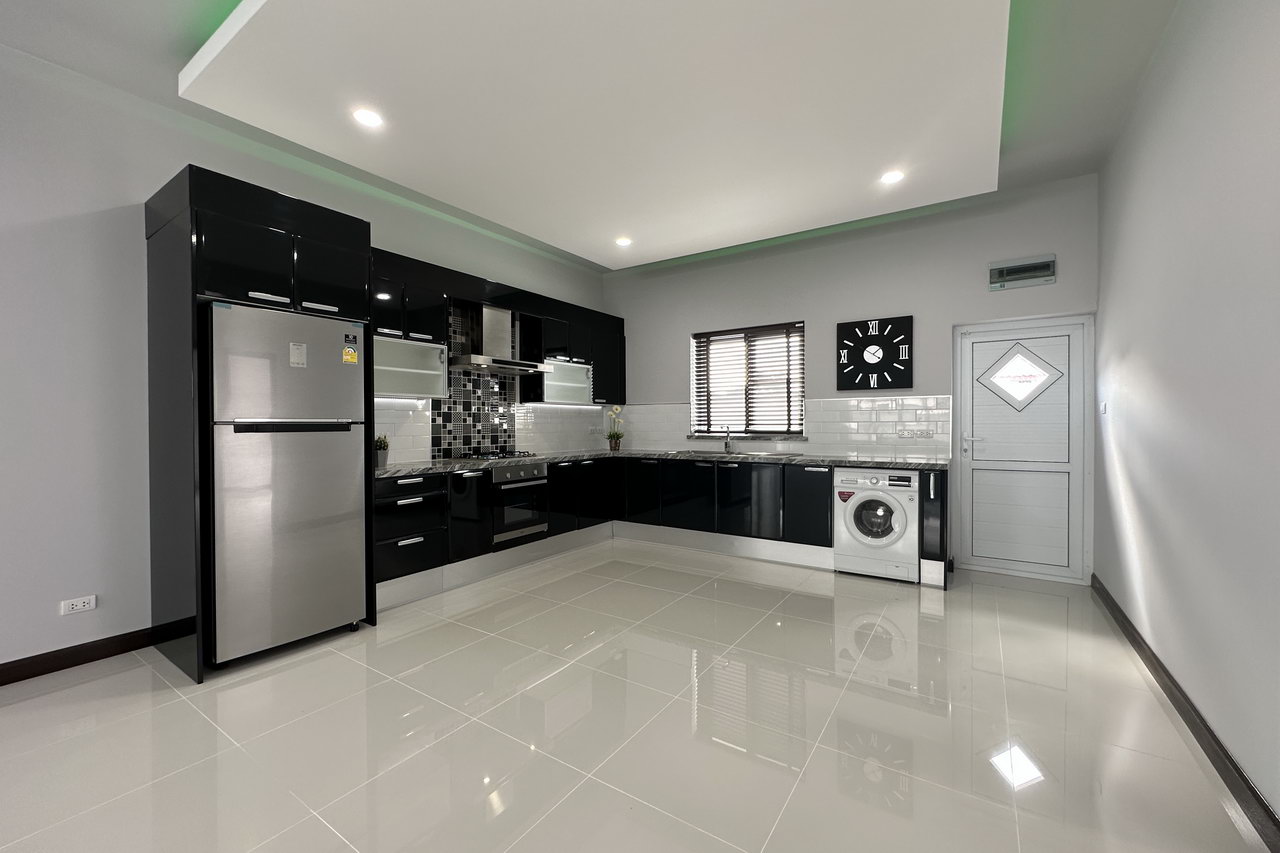 New Detached Beautiful Pool Villa for Sale, land size 540 sqm, living area 192 sqm, 3 bed, 3+1 bath, European and Thai kitchens, Part furnished, Tropical Garden, Private Swimming Pool, Carport