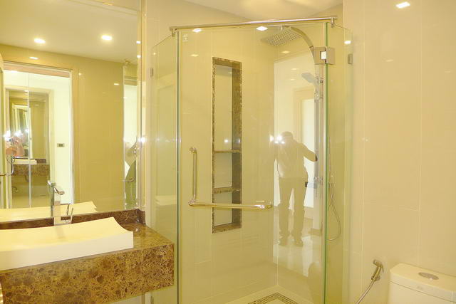 En-suite bathroom with glass shower cubicle with rainfall shower