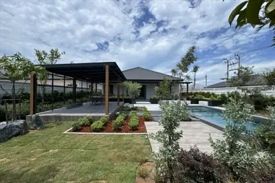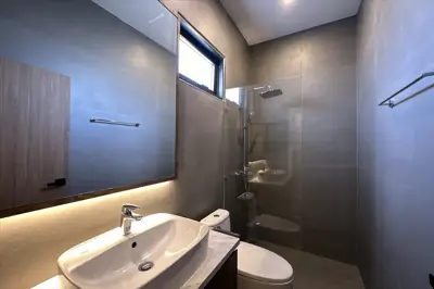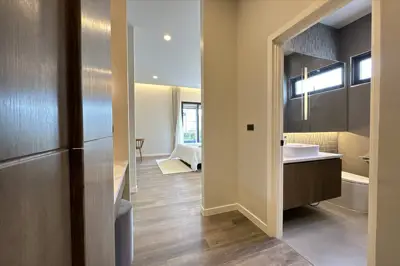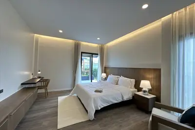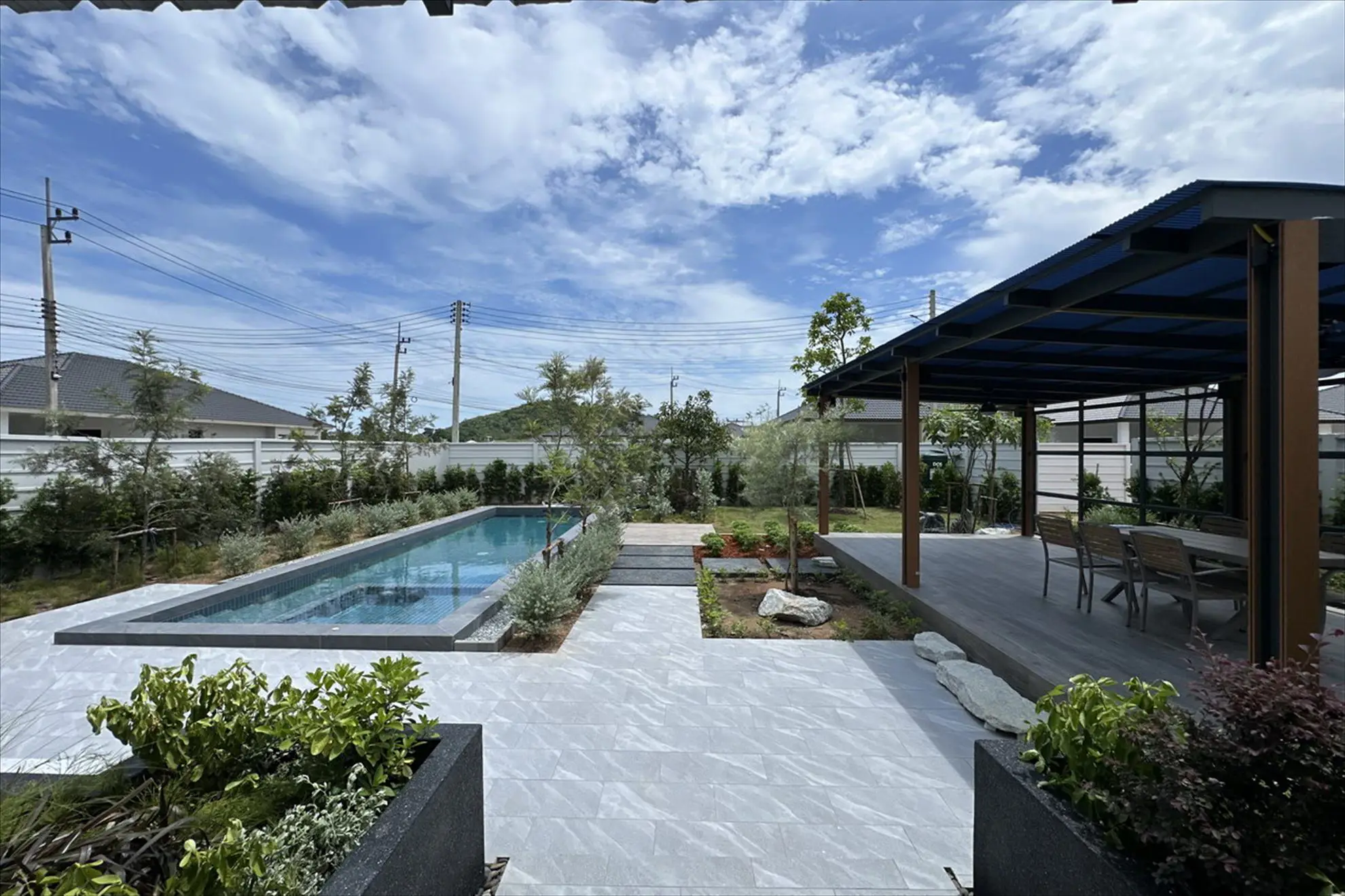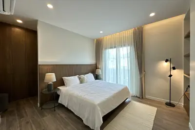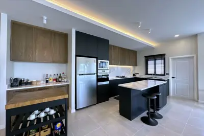 Panalee Banna Village, New Detached Modern House for Sale, land sizes from 396 to 607 sqm, living area 190 sqm, 3 bed, 4 bath, Euro kitchen, full furnished, Garden, Private Swimming Pool, 24 HS, Prices from * 10.46 M Baht
