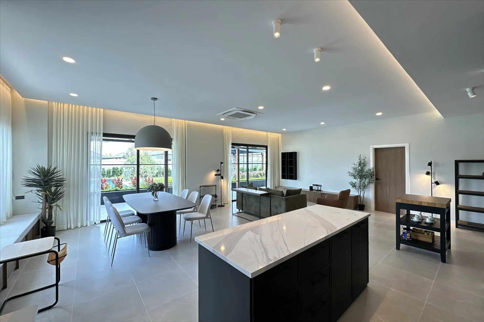 Open plan living room (large) with lounge and dining areas,