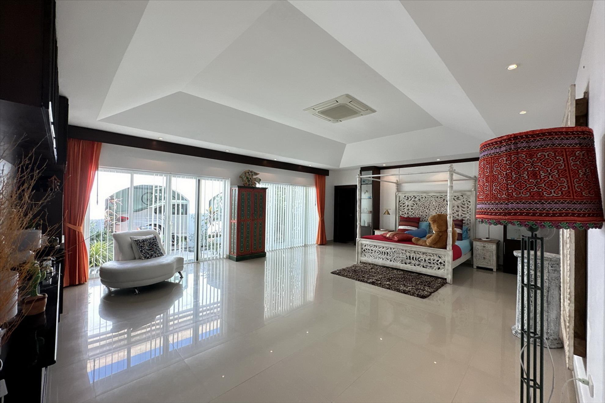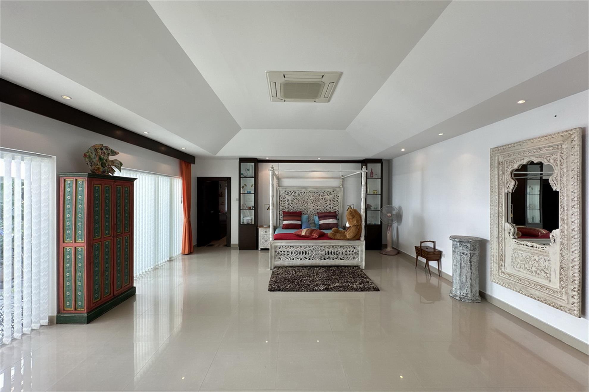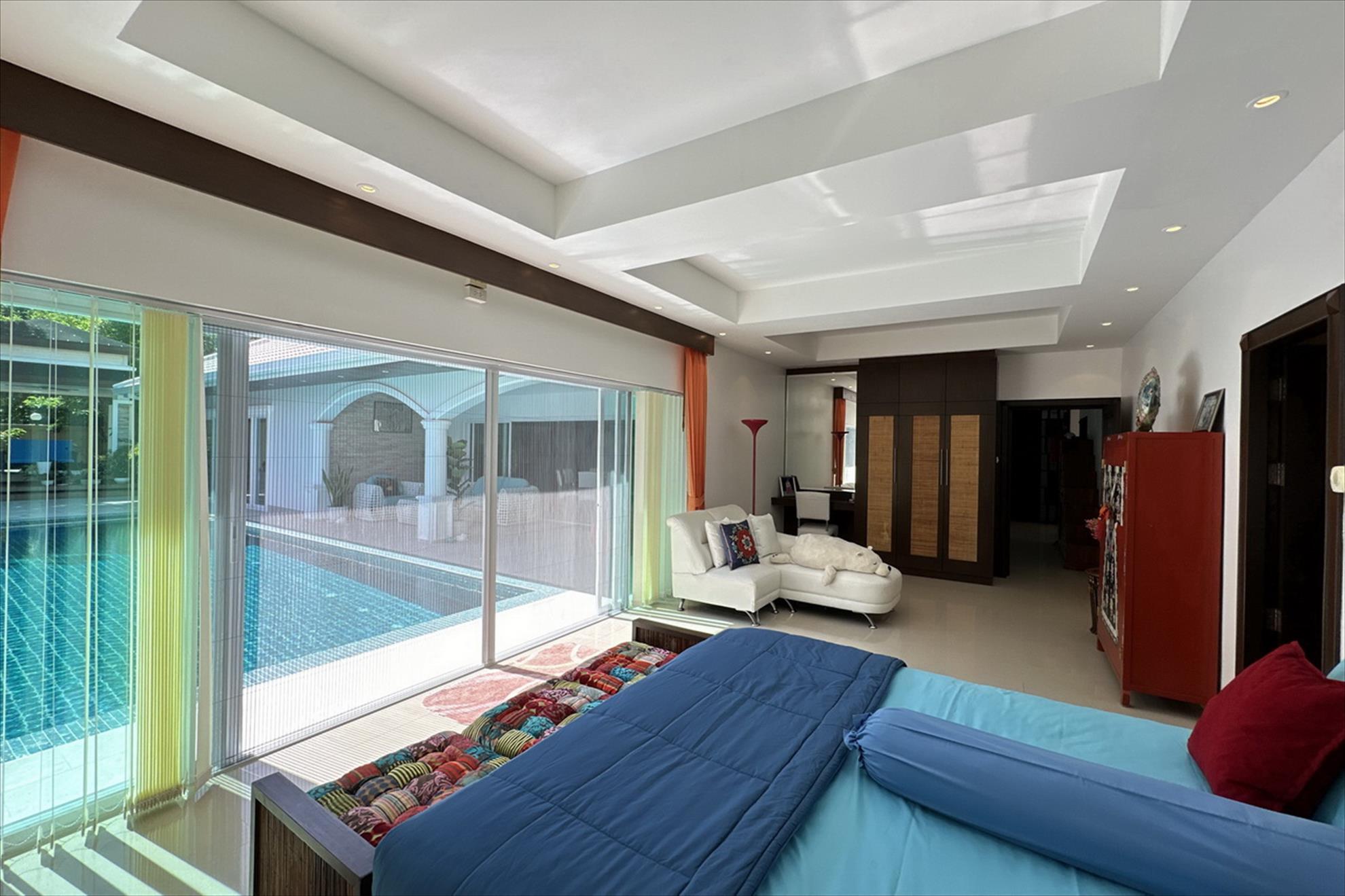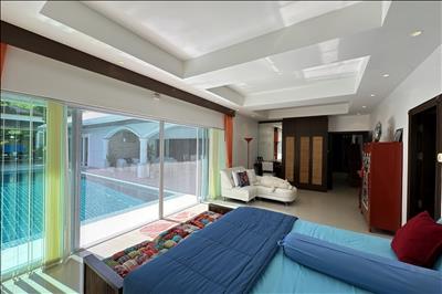 Grand Master Bedroom Suite (large) with opening patio doors to the garden and swimming pool