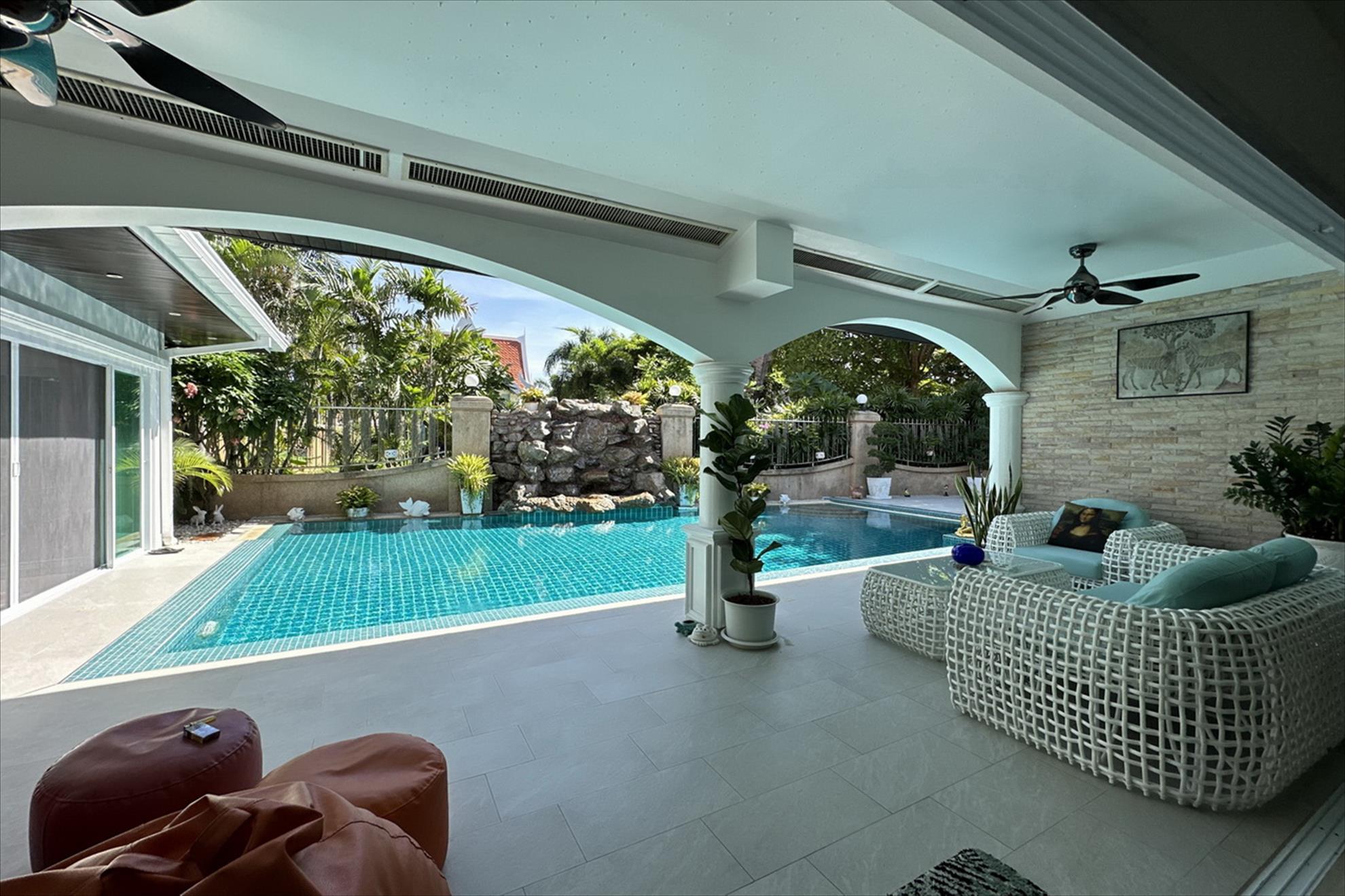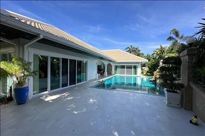 Jomtien Park Villas Modern Thai Bali PooVilla for Sale, 800M to the beach, newly Renovated, landsize 952 sqm, living area 480 sqm, 3+1 bed, 3+2 bath, basement room, Euro kitchen, full furnished, Tropical Gardens, Private Swimming Pool, 24 HS