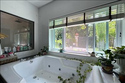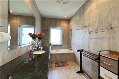 Ensuite bathroom (large) with his and hers wash basins, jacuzzi bath tub and shower cubicle