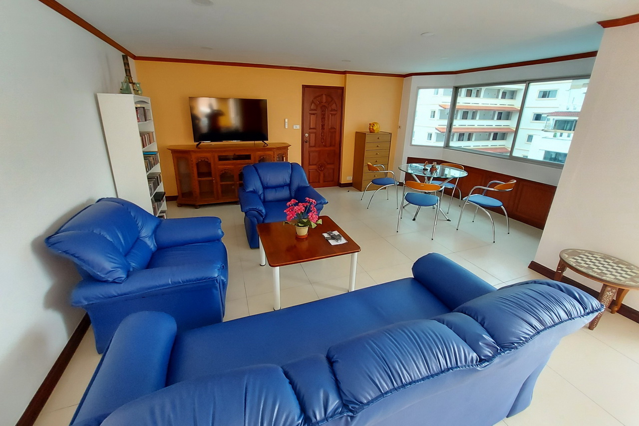 Pattaya Beach Condo for Rent, Corner unit, recently renovated, 91 sqm, 1 bed, 2 bath, kitchen, full furnished, Balcony, Swimming Pool View