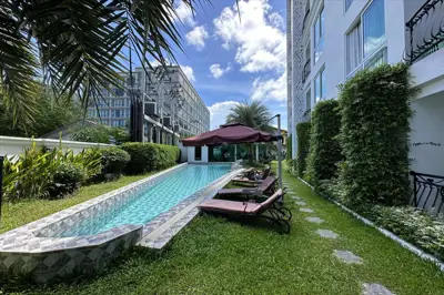 New Olympus City Garden Condo for Sale, Brand New, Never Been Lived In, 28 sqm, 1 bed, 1 bath, Euro kitchen, Part furnished, Balcony, Swim Pool View, Foreign Quota, ** 2 x Side x Side Units Available for Sale *