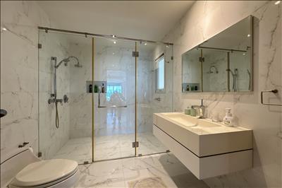 Ensuite bathroom with glass shower cubicle (rainfall shower)