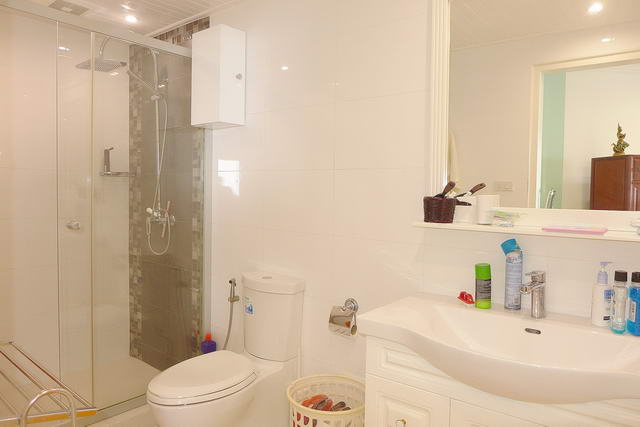 Separate Bathroom with glass shower cubicle (rainfall shower)