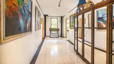 Auf der unteren Etage befinden sich ein großzügiger Flur und drei geräumige Schlafzimmer und zwei Badezimmer sowie zwei weitere Terrassen.
