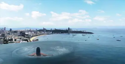 Nord-Pattaya, Neue Wongamat-Eigentumswohnung, neues Wahrzeichen, 56 Stockwerke, erstklassige Einrichtungen, 73 bis 89 m², 2 Schlafzimmer, 2 Badezimmer, Euro-Küche, Balkon, Preise vor Veröffentlichung ab * 18.720 M Baht