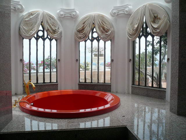 großes Badezimmer mit begehbarer Ankleide, versenkter Badewanne und separater Dusche,